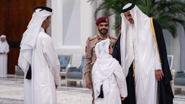 埃米尔殿下接见了总理兼外交部长谢赫·穆罕默德·本·阿卜杜勒拉赫曼·本·贾西姆·阿勒萨尼、协商会议议长哈桑·本·阿卜杜拉·加尼姆、酋长阁下、部长、副部长、协商会议成员和公民。