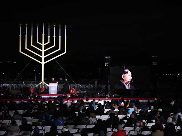 在国家大烛台的点灯仪式上,他说,光明节是一个“活出我们之前几代祖先的遗产”,“重新致力于拥抱我们的信仰和实践我们的传统”的时刻。