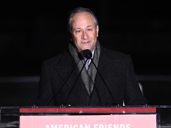 2023年12月7日,道格·埃姆霍夫在白宫举行的年度国家烛台点亮仪式上发表讲话。