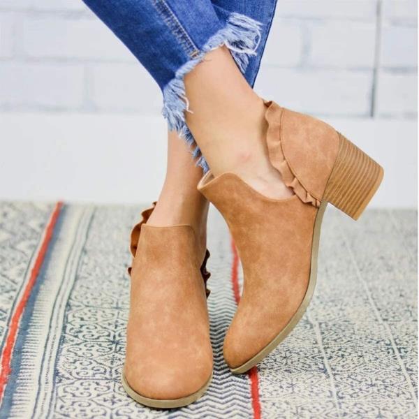 一个踝靴与一个有趣的侧面切割和褶边细节