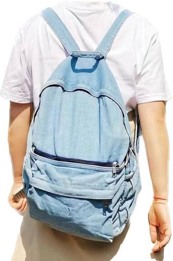 一个复古风格的牛仔背包,用来存放你上班路上的零碎东西