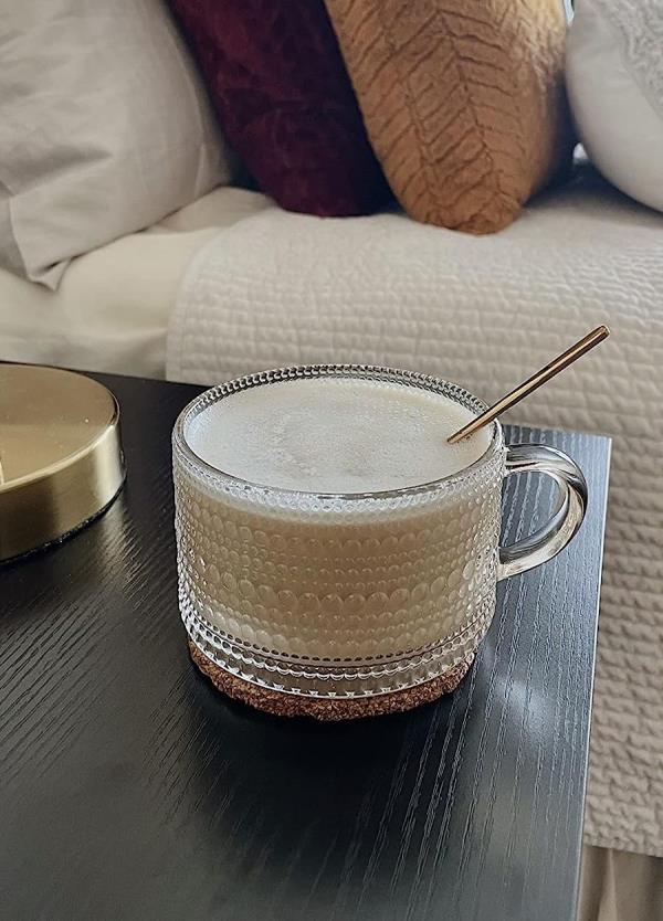 这是一套复古风格的玻璃马克杯,评论家们喜欢用它来装咖啡和酸奶蛋糕
