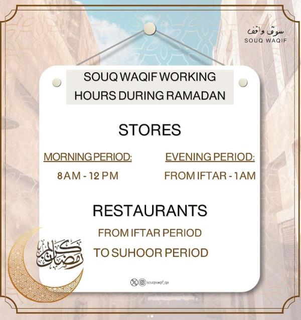 商店:早上8点到晚上12点,开斋时间到凌晨1点